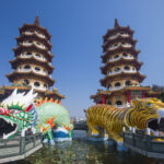 湖を囲むようにして色とりどりの廟や楼閣が並んでおり中でも龍虎塔はご利益があると言われ最も人気です。