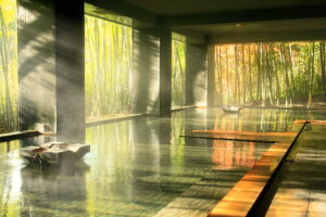 竹林に囲まれた大浴場や渓流を望む露天風呂、檜造りの内湯など、 2つの貸切風呂を含む多彩な湯めぐりが旅館内で楽しめます。