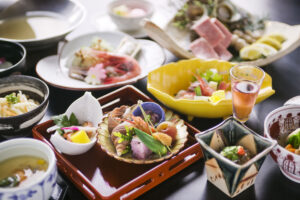 夕食は能登の里山と里海が育んだ旬の幸を使用し、料理長が腕によりをかけたお料理をお楽しみください。