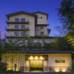 本館外観(夕景) /本館和室一間タイプ(一例)/貸切風呂「寿衛子」 (イメージ)