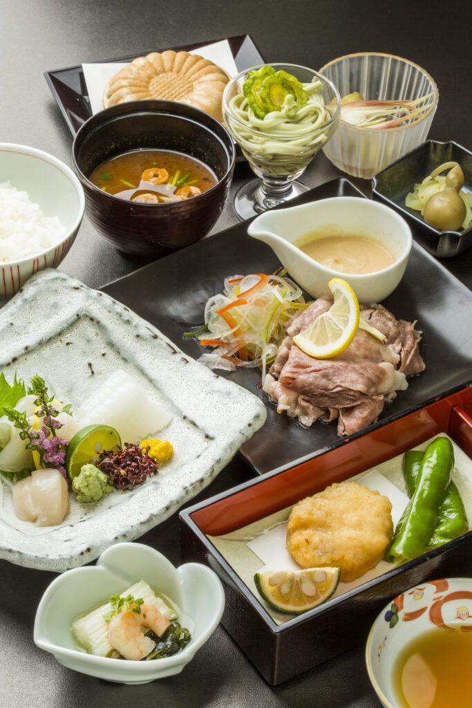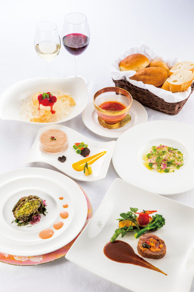 本格的なフレンチをはじめ和洋中、旬の味を盛り込んだ多彩なメニューが誇り。