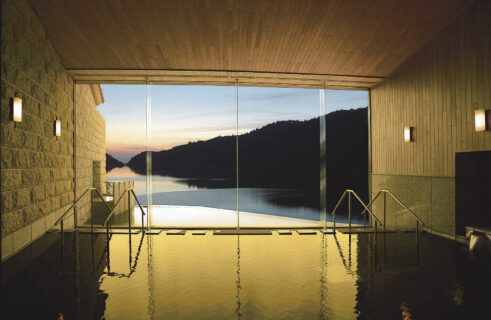 眼下におしどり池を望む、源泉かけ流し温泉も心ゆくまでお愉しみください。
